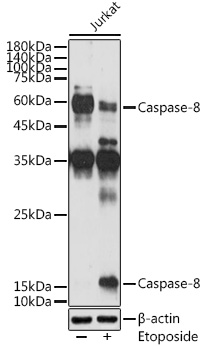 Western blot analysis of extracts of various cell lines, using Caspase-8 antibody at 1:1000 dilution.