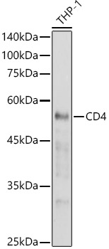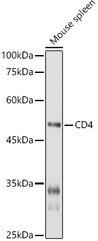 Western blot analysis of extracts of Rat lung, using CD4 antibody at 1:500 dilution.