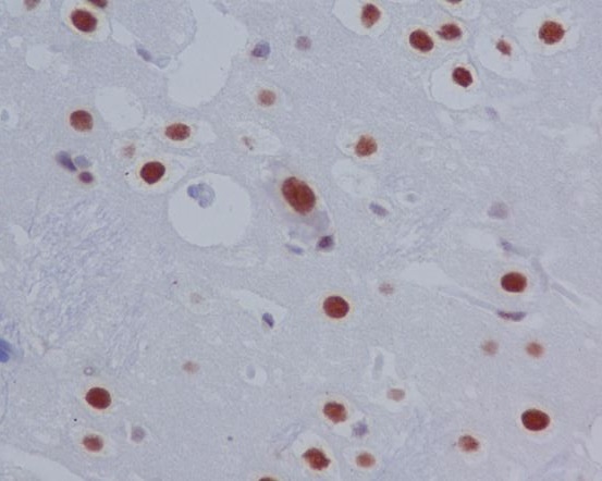 Immunohistochemistry analysis of paraffin-embedded rat brain using Phospho-STAT3 antibody.High-pressure and temperature Sodium Citrate pH 6.0 was used for antigen retrieval.
