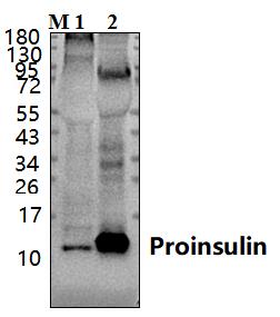 Western blot (WB) analysis of Human Proinsulin (3L10) monoclonal antibody at 1:1000 dilution