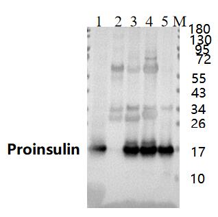 Lane3:Immunoprecipitation of Human Proinsulin (1B24) monoclonal antibody