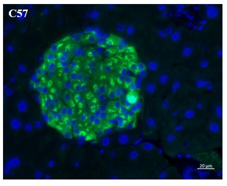 Immunohistochemical analysis of Mouse Proinsulin (1A3-5) staining in Mouse pancreas tissue section.