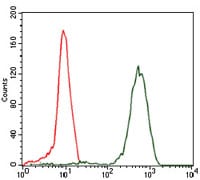 Flow cytometric analysis of HeLa cells using EIF4B mouse mAb (green) and negative control (red).