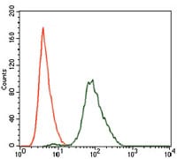 Flow cytometric analysis of NIH3T3 cells using SPIB mouse mAb (green) and negative control (red).
