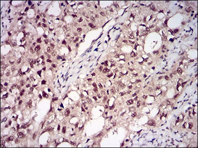Immunohistochemical analysis of paraffin-embedded human cervical cancer tissues using PPP1CB mouse mAb with DAB staining.