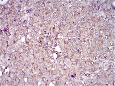 Immunohistochemical analysis of paraffin-embedded human endometrial cancer tissues using CD38 mouse mAb with DAB staining.