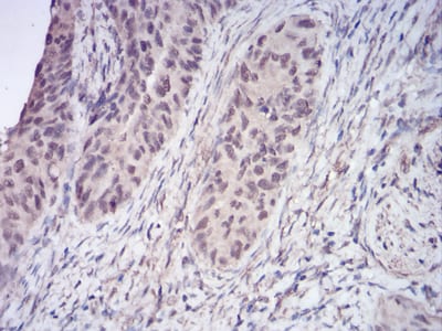Immunohistochemical analysis of paraffin-embedded human cervical cancer tissues using HDAC2 mouse mAb with DAB staining.