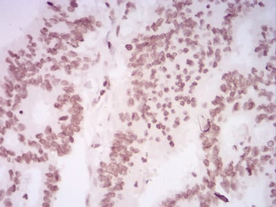 Immunohistochemical analysis of paraffin-embedded human rectum cancer tissues using HIST2H4A(20Me) mouse mAb with DAB staining.