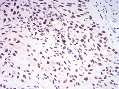 Immunohistochemical analysis of paraffin-embedded human esophageal cancer tissues using KDM1A mouse mAb with DAB staining.