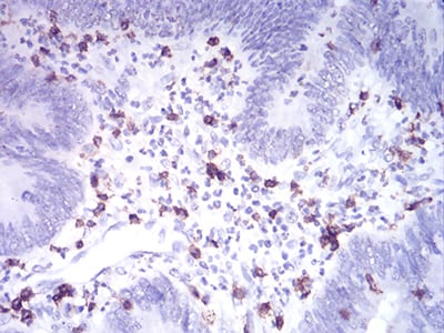 Immunohistochemical analysis of paraffin-embedded human rectum cancer tissues using CD2 mouse mAb with DAB staining.