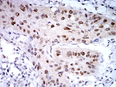 Immunohistochemical analysis of paraffin-embedded human lung cancer tissues using PSMC3 mouse mAb with DAB staining.