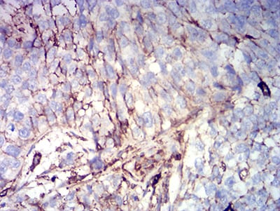 Immunohistochemical analysis of paraffin-embedded human bladder cancer tissues using CD44 mouse mAb with DAB staining.