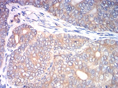 Immunohistochemical analysis of paraffin-embedded human cervical cancer tissues using CALR mouse mAb with DAB staining.