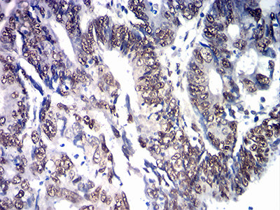 Immunohistochemical analysis of paraffin-embedded human cervical cancer tissues using SOX11 mouse mAb with DAB staining.