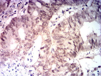 Immunohistochemical analysis of paraffin-embedded human Colon cancer tissues using MLH1 mouse mAb with DAB staining.