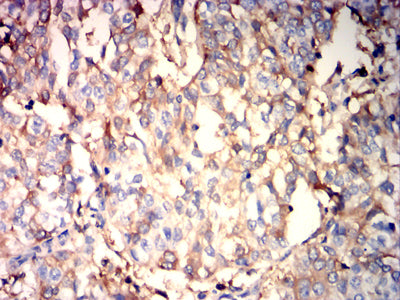 Immunohistochemical analysis of paraffin-embedded human bladder cancer tissues using ALB mouse mAb with DAB staining.