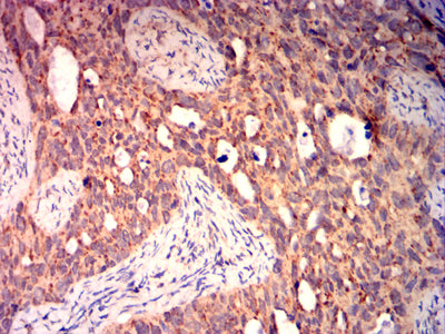 Immunohistochemical analysis of paraffin-embedded human cervical cancer tissues using BAX mouse mAb with DAB staining.