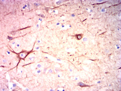 Immunohistochemical analysis of paraffin-embedded human brain tissues using NEFL mouse mAb with DAB staining.