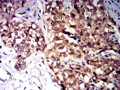 Immunohistochemical analysis of paraffin-embedded human bladder cancer tissues using CD47 mouse mAb with DAB staining.