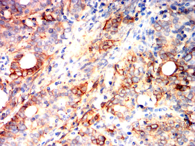 Immunohistochemical analysis of paraffin-embedded human cervical cancer tissues using SCARB1 mouse mAb with DAB staining.