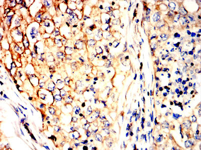 Immunohistochemical analysis of paraffin-embedded human lung cancer tissues using P4HB mouse mAb with DAB staining.