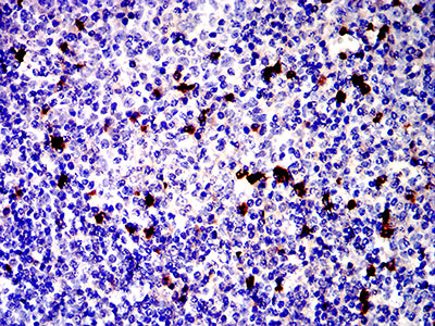 Immunohistochemical analysis of paraffin-embedded human tonsil tissues using CD81 mouse mAb with DAB staining.