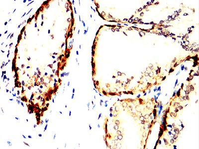 Immunohistochemical analysis of paraffin-embedded human prostate cancer tissues using ACHE mouse mAb with DAB staining.