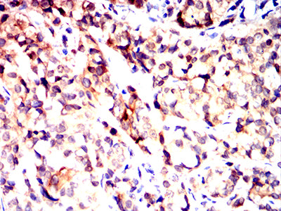 Immunohistochemical analysis of paraffin-embedded human bladder cancer tissues using UCHL1 mouse mAb with DAB staining.