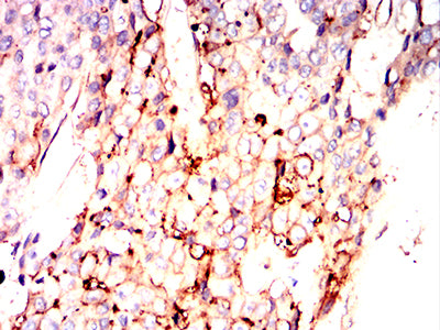Immunohistochemical analysis of paraffin-embedded human liver cancer tissues using CD54 mouse mAb with DAB staining.