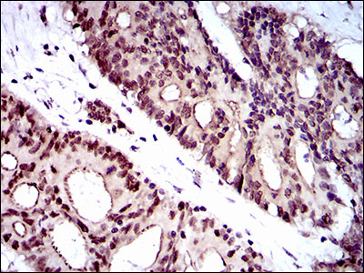 Immunohistochemical analysis of oaraffn-embedded colon cancer tissues using WHSC2 mouse mAb with DAB staining
