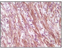 Immunohistochemical analysis of paraffin-embedded human smooth musde sarcoma, showing cytoplasmic localization using Desmin mouse mAb with DAB staining.