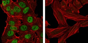 Background :NANOG: Nanog homeobox. Entrez Protein NP_079141. Nanog is a divergent homeodomain protein that directs pluripotency and differentiation of undifferentiated embryonic stem cells. Nanog mRNA is present in pluripotent mouse and human cell lines, and absent from differentiated cells. Human Nanog protein shares 52% overall amino acid identity with the mouse protein and 85% identity in the homeodomain. Human Nanog maps to gene locus 12p13.31, whereas mouse Nanog maps to gene loci 6 F2. Murine embryonic Nanog expression is detected in the inner cell mass of the blastocyst. High levels of human Nanog expression were detected by Northern analysis in the undifferentiated N-Tera embryonal carcinoma cell line.