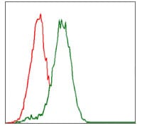 Flow cytometric analysis of HepG2 cells using CYP3A4 mouse mAb (green) and negative control (red).