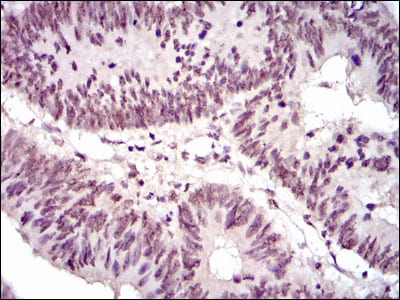 Immunohistochemical analysis of paraffin-embedded human rectum cancer tissues using NCK1 mouse mAb with DAB staining.
