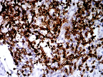 Immunohistochemical analysis of paraffin-embedded human lung cancer tissues using CD2 mouse mAb with DAB staining.