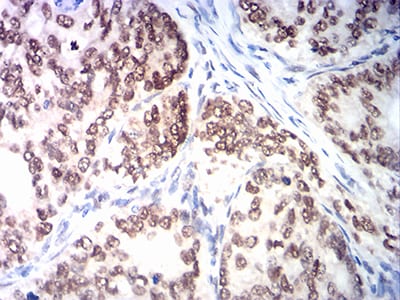 Immunohistochemical analysis of paraffin-embedded human cervical cancer tissues using MSH2 mouse mAb with DAB staining.