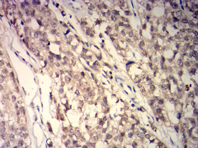 Immunohistochemical analysis of paraffin-embedded human cervical cancer tissues using GSTP1 mouse mAb with DAB staining.