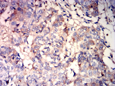 Immunohistochemical analysis of paraffin-embedded human bladder cancer tissues using ALB mouse mAb with DAB staining.