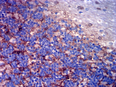 Immunohistochemical analysis of paraffin-embedded human cerebellar tissues using GLUL mouse mAb with DAB staining.