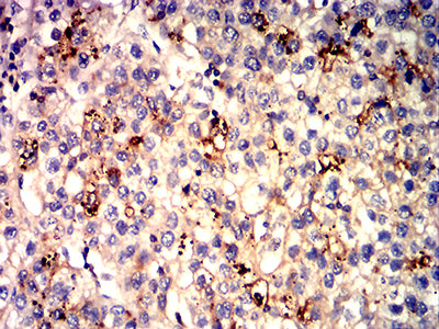 Immunohistochemical analysis of paraffin-embedded human liver cancer tissues using GPC3 mouse mAb with DAB staining.