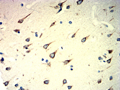 Immunohistochemical analysis of paraffin-embedded human brain tissues using M6PR mouse mAb with DAB staining.