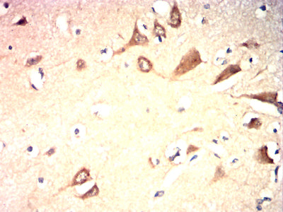 Immunohistochemical analysis of paraffin-embedded human brain tissues using B4GALNT1 mouse mAb with DAB staining.