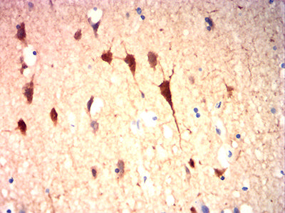 Immunohistochemical analysis of paraffin-embedded human brain tissues using DLG4 mouse mAb with DAB staining.