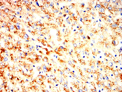 Immunohistochemical analysis of paraffin-embedded human liver tissues using LAMP1 mouse mAb with DAB staining.