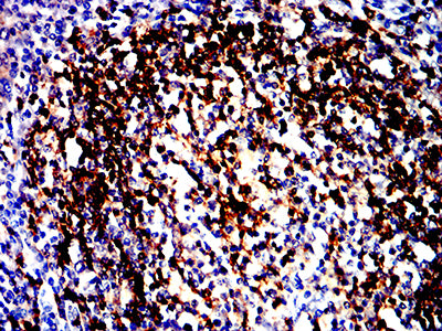 Immunohistochemical analysis of paraffin-embedded human tonsil tissues using HLA-DRB1 mouse mAb with DAB staining.