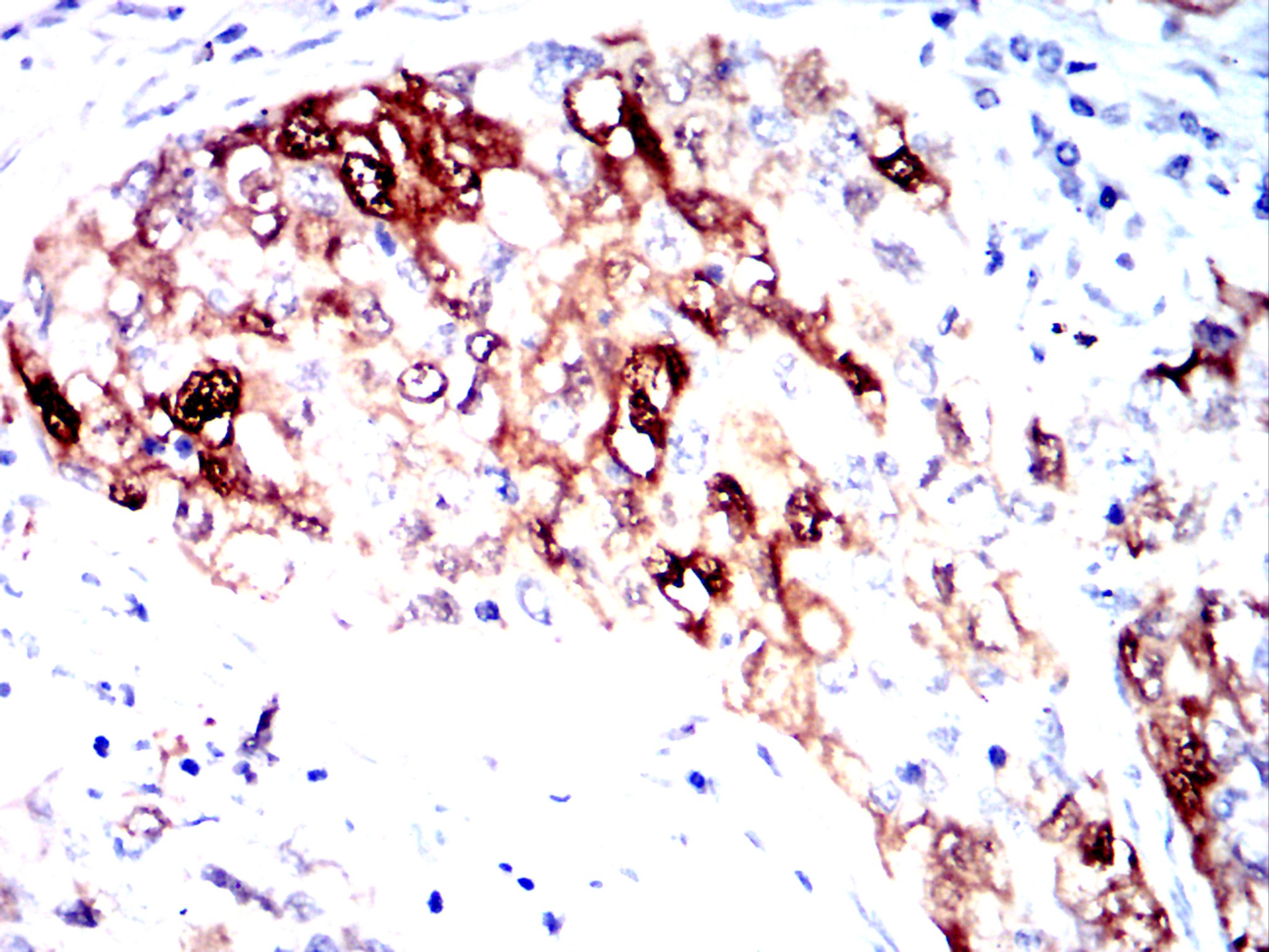 Immunohistochemical analysis of paraffin-embedded human lung cancer tissues using AKR1C1 mouse mAb with DAB stainin.